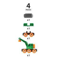 Anheben, drehen und absetzen. Egal welche Güter der Kranwagen erledigt die Arbeit spielend. Nach rechts oder links, rauf oder runter dreh an der Kurbel und hol die Ladung vom Wagen. Lässt sich mit der BRIO Bahn kombinieren. Anheben, drehen und absetzen. Egal w...