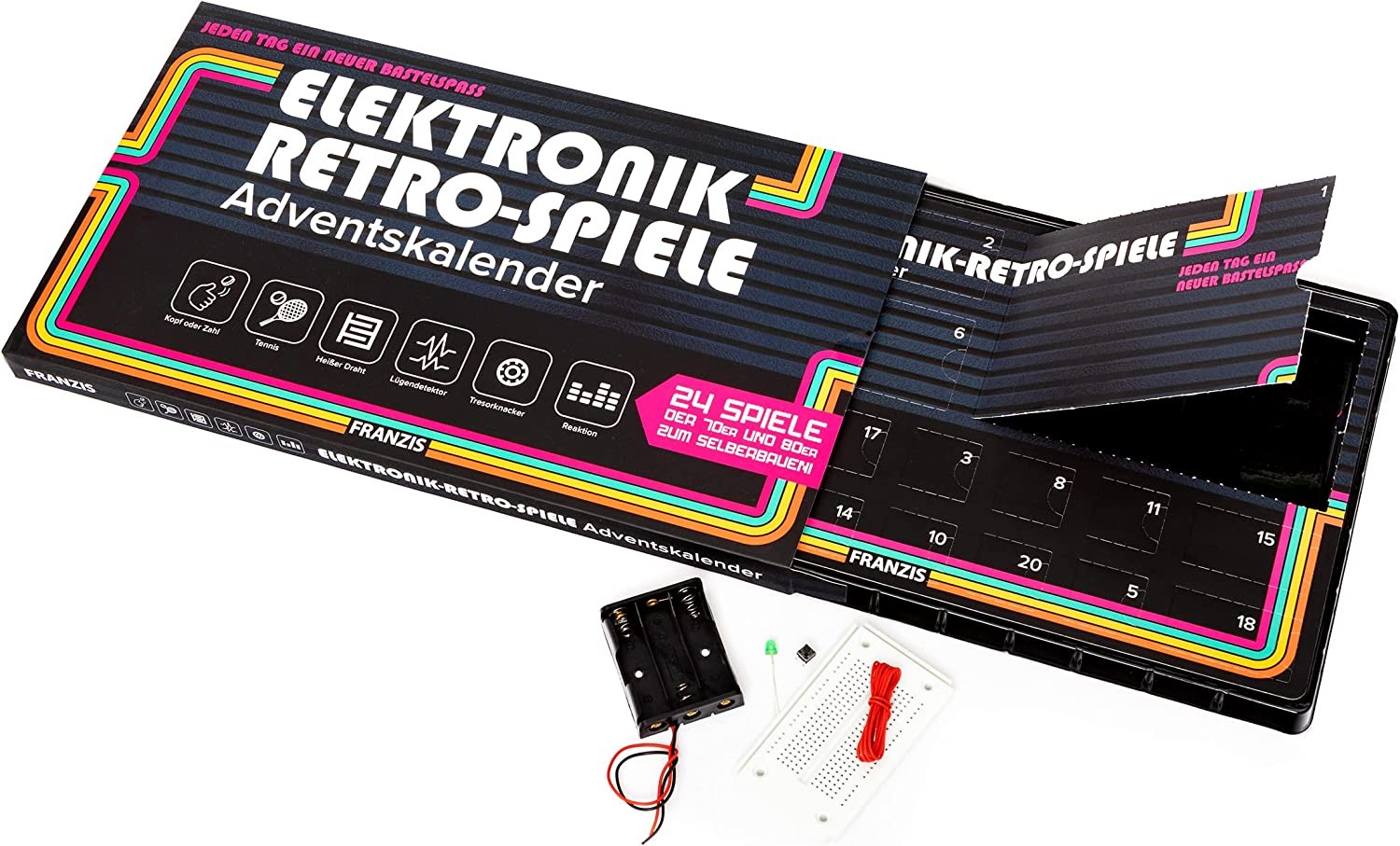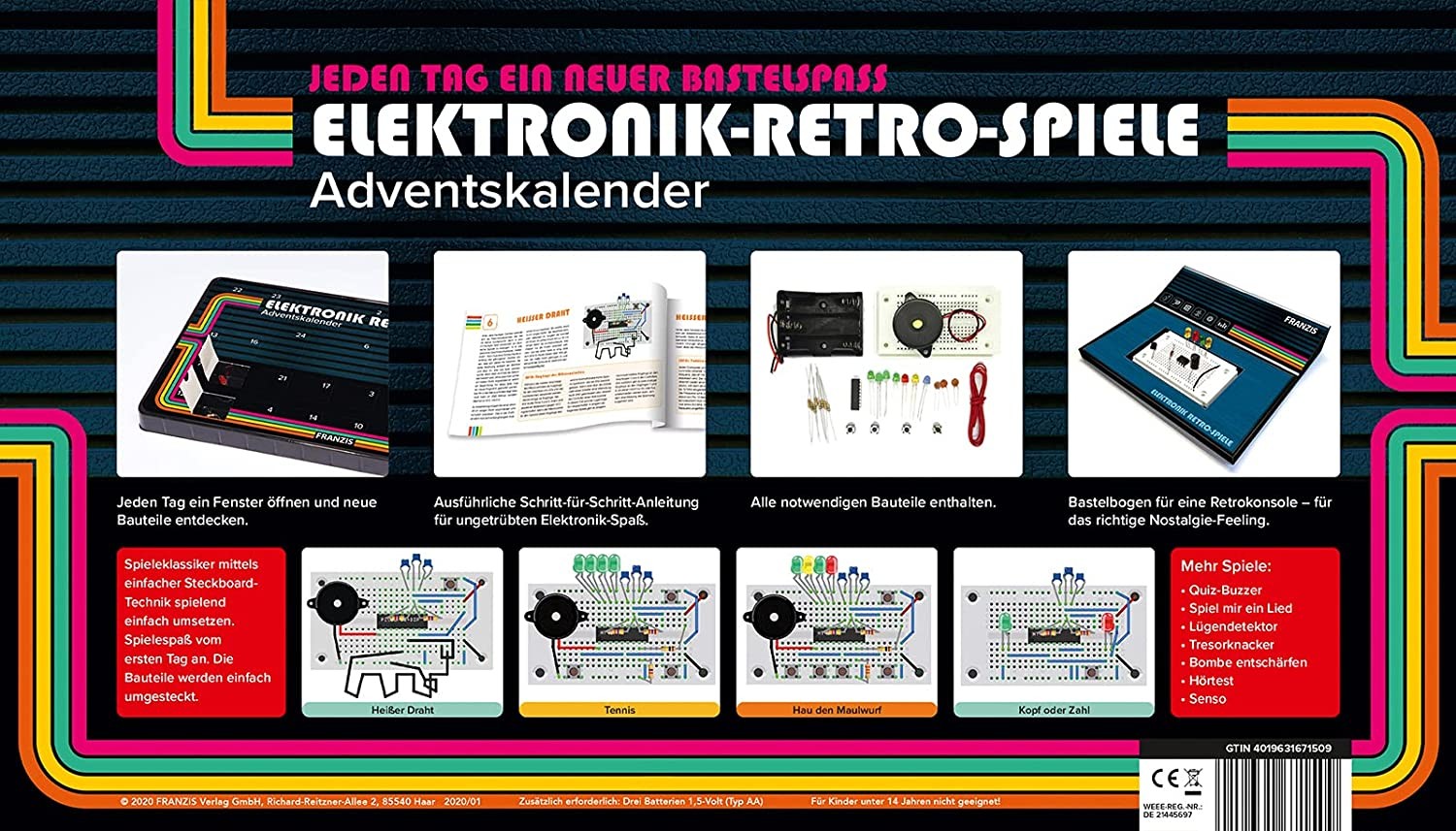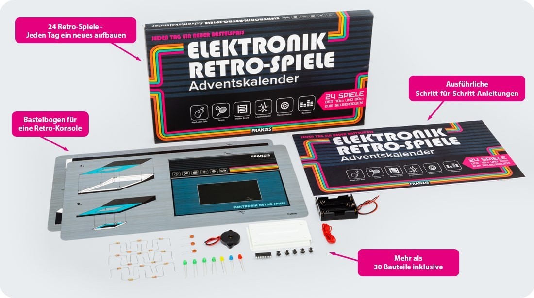 24 Spieleklassiker der 70er- und 80er-Jahre für zu Hause, ganz einfach mit der Steckboard-Technik. Aufbau- und Spielspaß vom ersten Tag an. Die Bauteile werden einfach umgesteckt kein Löten notwendig! Die 24 Boxen enthalten alle elektronischen Bauteile, die ma...